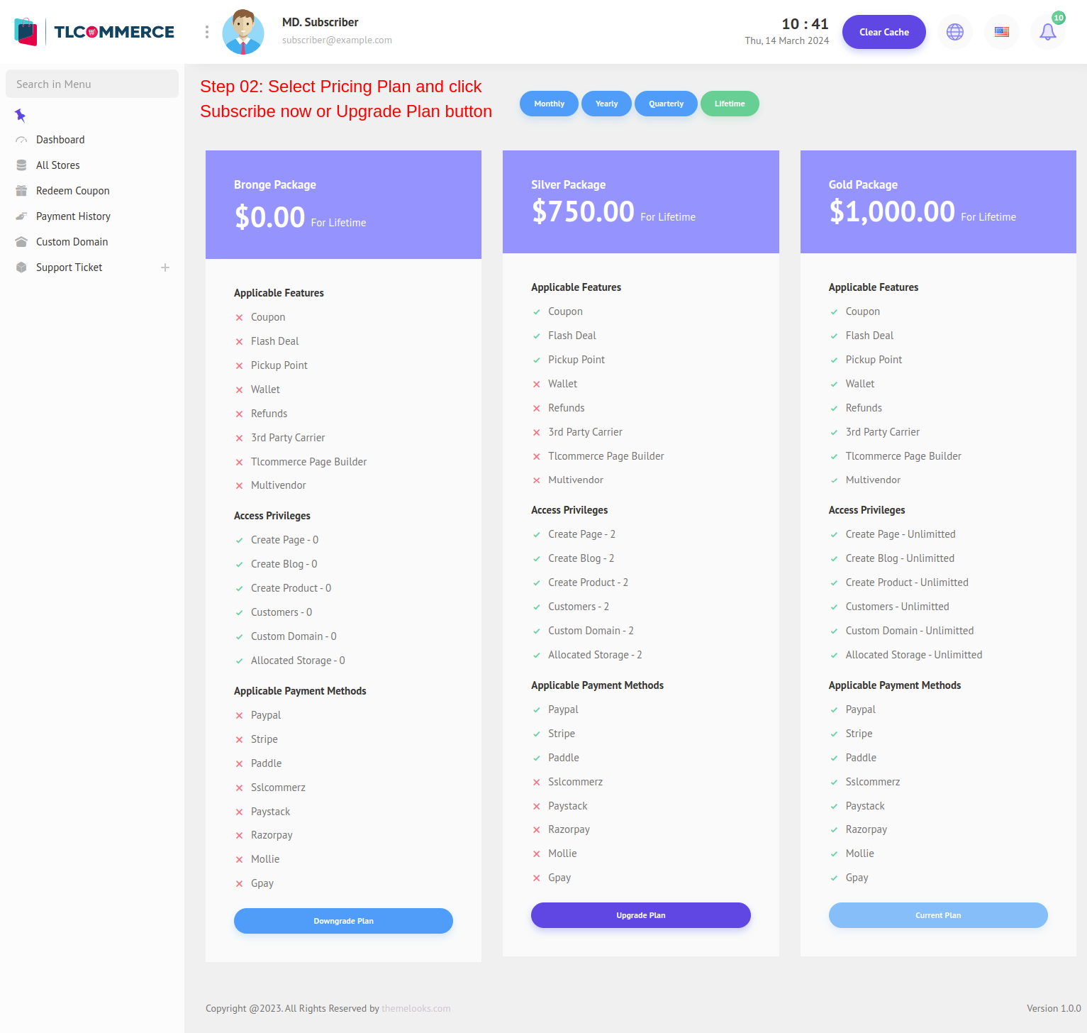4. Customers just have to select their preferred package and click the "Subscribe Now" button and then by following the rest of the procedure a new store will be created.