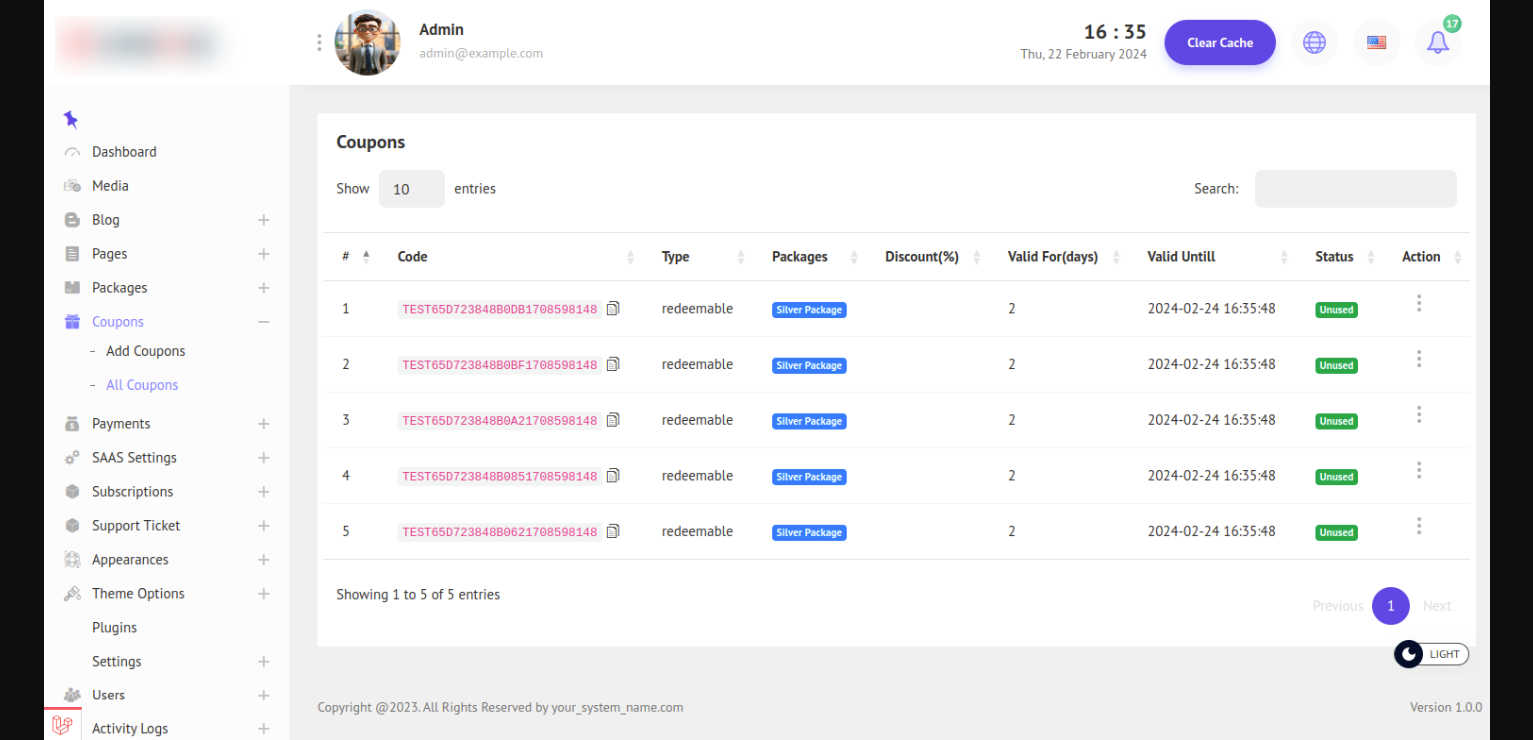 3. You can update and delete coupons by clicking the Edit and Delete buttons from the action column