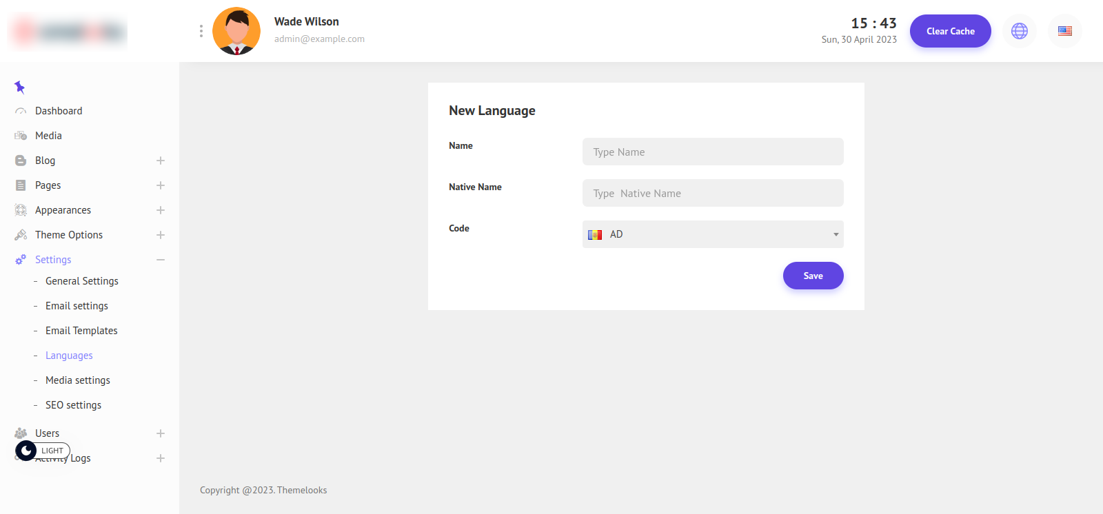 To Edit a Language Click The Edit from the language list Action options. It will redirect you to the edit language page.