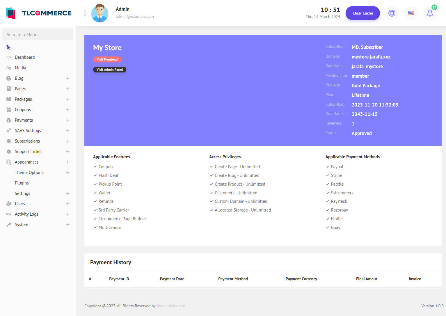 3. You can visit the store panel by clicking the "Visit Admin Panel" & "Visit Frontend" buttons from the action column.