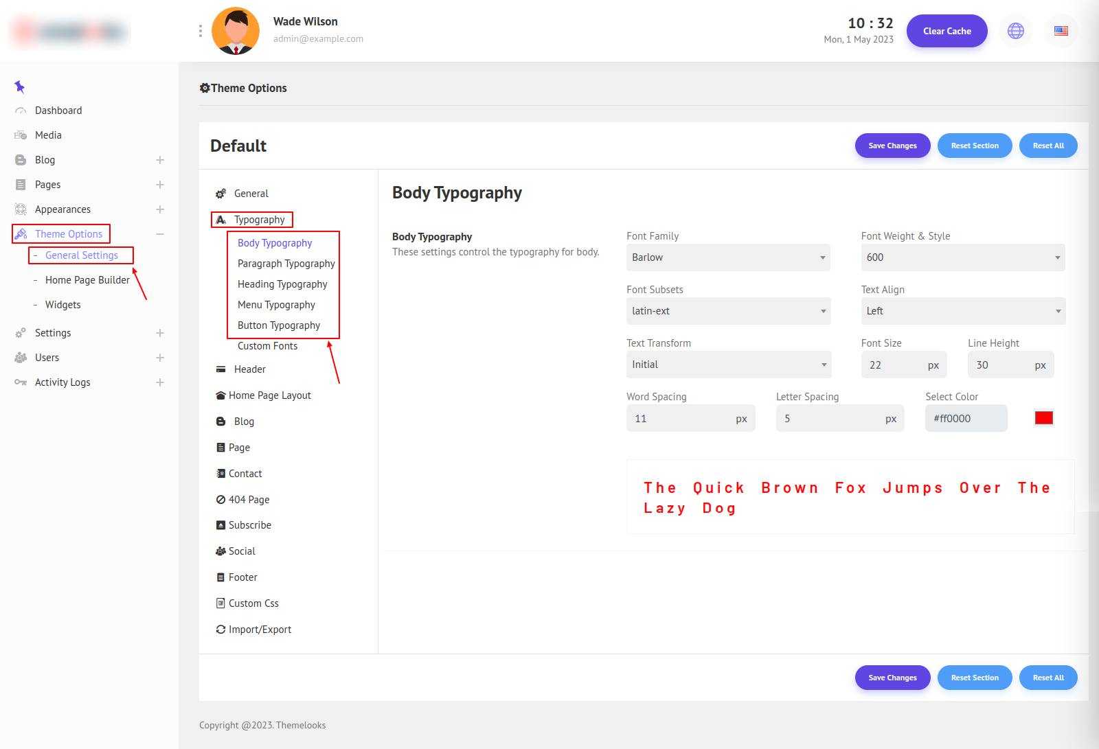 You can customize the website typography as you like. Follow Theme Options > Theme Settings. Here from the Typography tab, all types of typography are available.