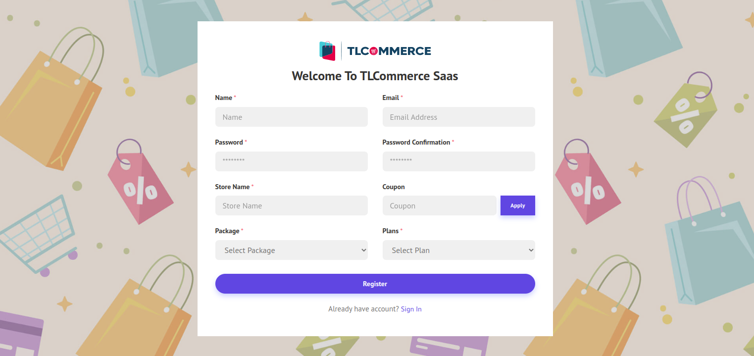 1. On the home page of your system, customers will see a "Sign Up " button. After clicking the button customers will be redirected to the registration page.