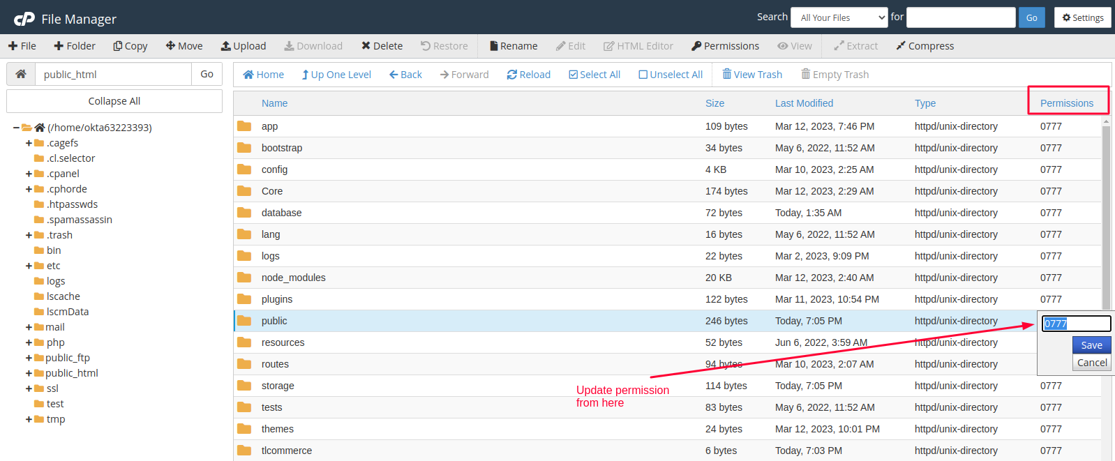 If any folder or file permission does not fulfill our requirement then you need to change these file and folder permissions. The following image shows how you can change folder permission in Cpanel.